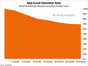 At the same time, there are these interesting new devices just hitting the market. We're really excited about the potential of virtual reality and wearables. They have some major hurdles to overcome, but prices are sure to drop and the hardware is guaranteed to improve. | | | So you were saying the vast majority of apps fail. If I'm a business, is there anything I can do to improve my chances of success in this crowded environment? | | | It's definitely not easy to build a successful app. We're in the midst of a mobile engagement crisis. The average app loses 77% of its daily active users within the first three days after install. But at the same time, many don't know that the majority of users keep apps installed on their devices two years after download even if they stop using them. The longer a user keeps an app, the longer developers have to reengage that customer. That makes understanding how to effectively use re-engagement tools, like push notifications, so important. It's important but it's not obvious. Companies need to understand how consumers interact with apps and how to leverage new technologies to better engage them. | | | What about the other half of your coverage? Why the focus on platforms? | | Mobile is rife with platform-based businesses. Think about Apple, Android, or Facebook's Messenger. These are mini ecosystems situated within mobile. Platforms are networks that create value by facilitating interactions between product and service providers and consumers. And many have grown to the point where they're now able to wreak havoc on traditional businesses. Think about what Airbnb has done to the hotel industry or what Uber has done to taxis.