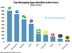 But the platform space is volatile and often zero-sum. For instance, the more time consumers spend downloading and using apps from the iOS App Store, the less time they have to watch ads on Facebook. Snapchat is on top of the mobile messaging world today, but could easily be replaced by Kik tomorrow. That means businesses need to think carefully about which platforms they partner with and how they deploy on them. We aim to keep our clients abreast of how these ecosystems evolve so they can capitalize on them. | | | Speaking of platforms, there's a lot of buzz around messaging apps. Tell us, are they really going to upend the mobile ecosystem? | | | I think they already have. Messaging apps surpassed social networks in size last year. The top four platforms now have about 3 billion monthly active users. That's crazy. There's no way you can ignore the size of that audience if you're a business. And chat apps are growing into their own platforms.